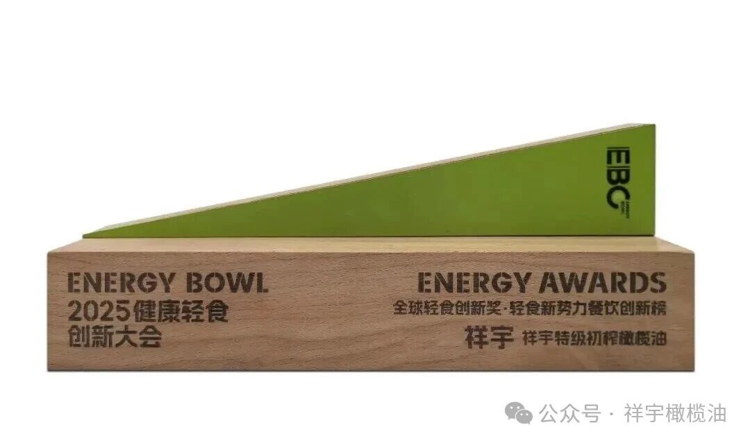 在2025EBC健康輕食創(chuàng)新大會(huì)上,祥宇橄欖油榮膺“全球輕食新勢(shì)力餐飲創(chuàng)新獎(jiǎng)”,